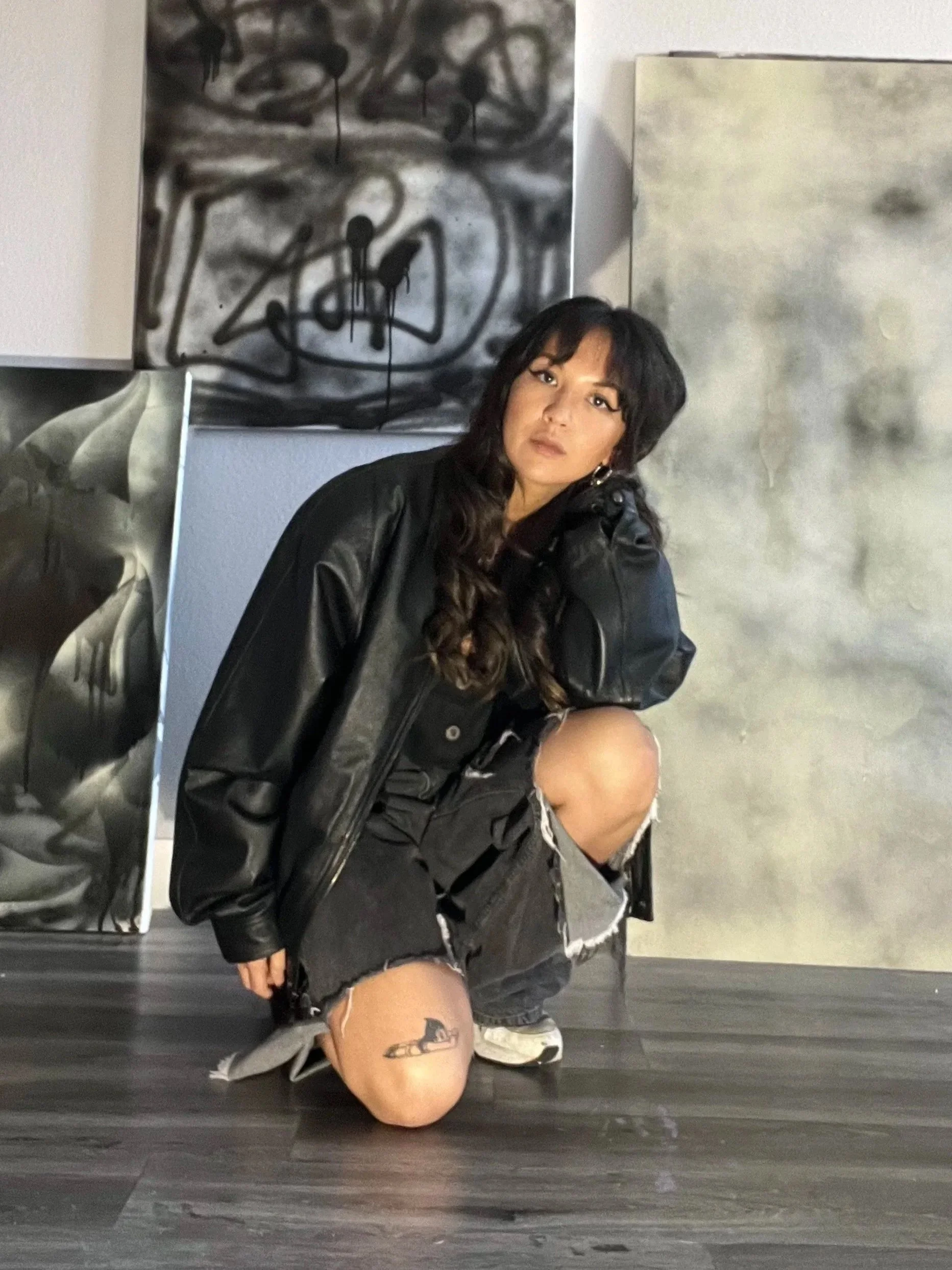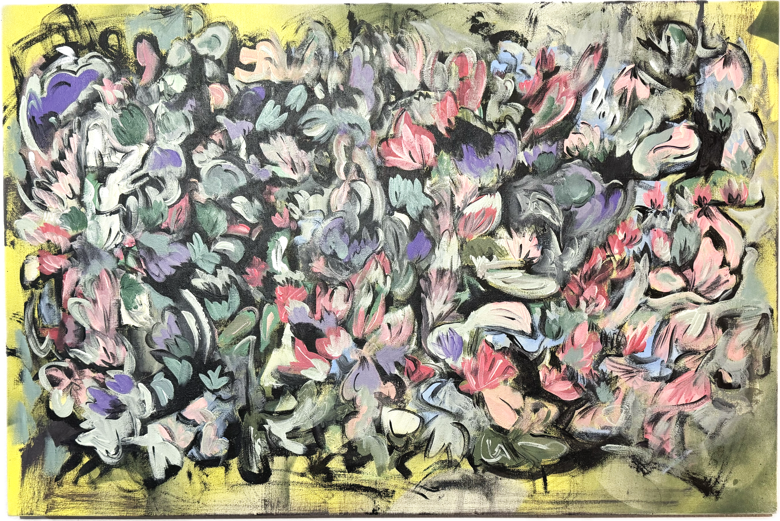 Acrylic Paint, Latex Paint, Spray Paint on Canvas 24” x 36”
